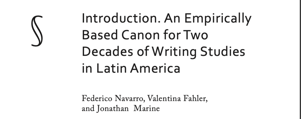 Introduction. An Empirically Based Canon for Two Decades of Writing Studies in Latin America